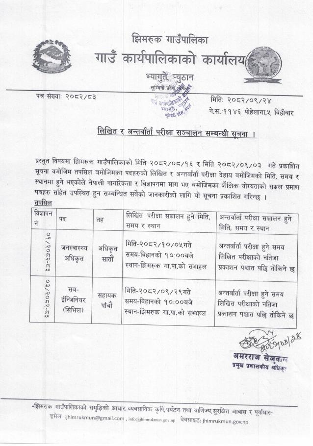 लिखित परीक्षा अन्तर्वार्ता सञ्चालन सम्बन्धी सूचना ।