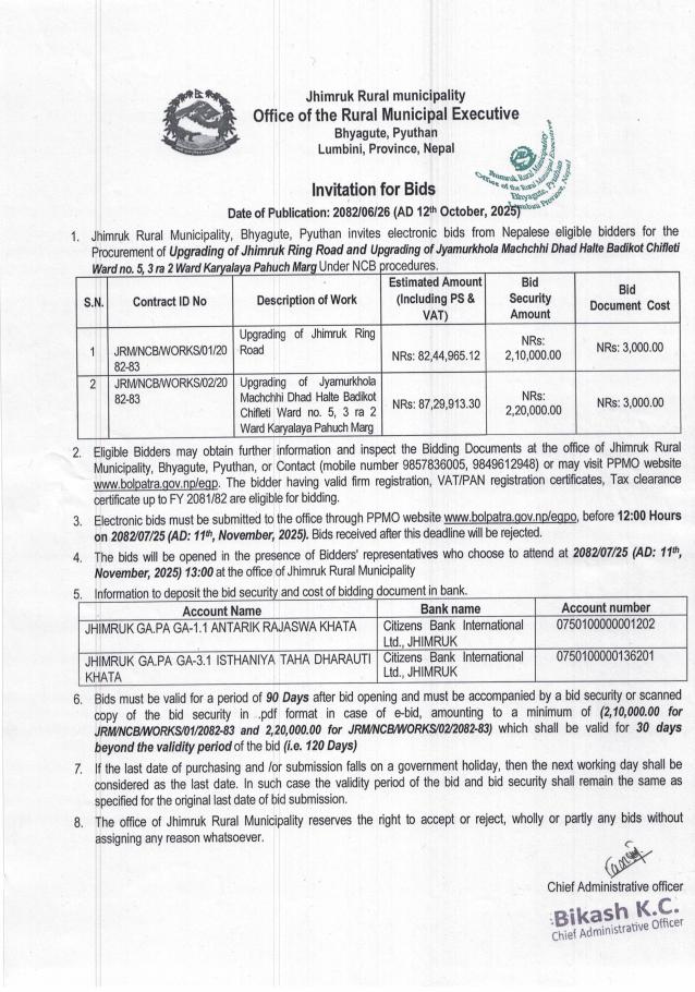 सार्वजनिक खरिद/बोलपत्र सूचना
