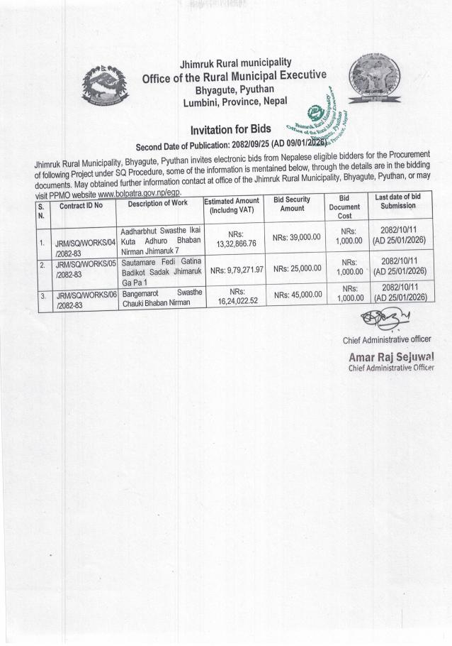 Invitation for Bids Second Date of Publication 20821007 Sanitary pad and stationary and Karyalaya sanchalan tatha other goods item.