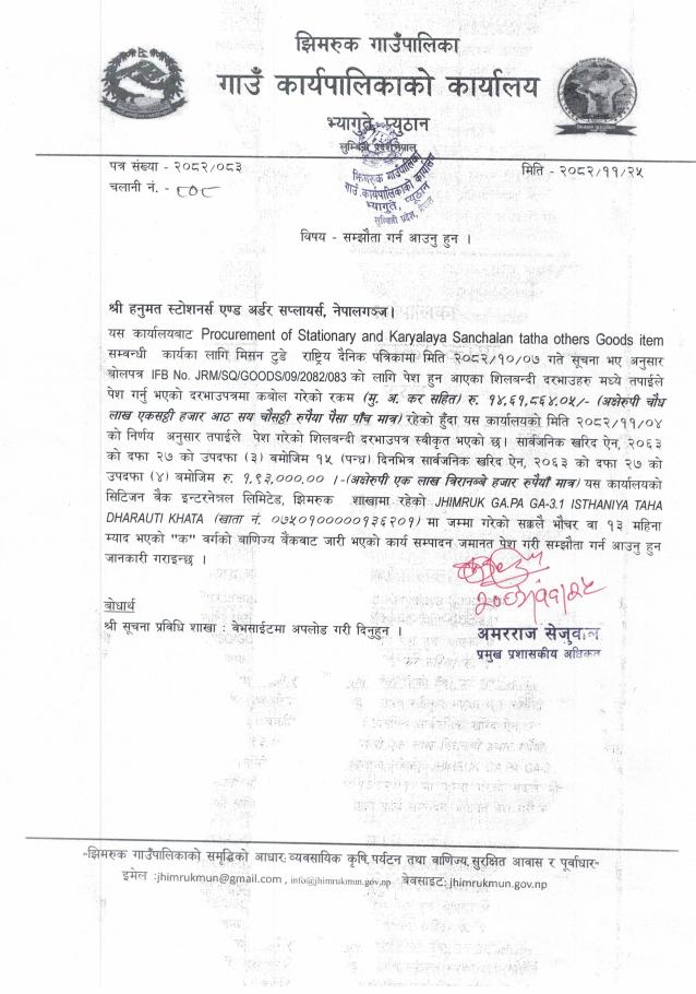 Procurement of Stationary and Karyalaya Sanchanlan को सम्झौता गर्न आउनु हुन ।