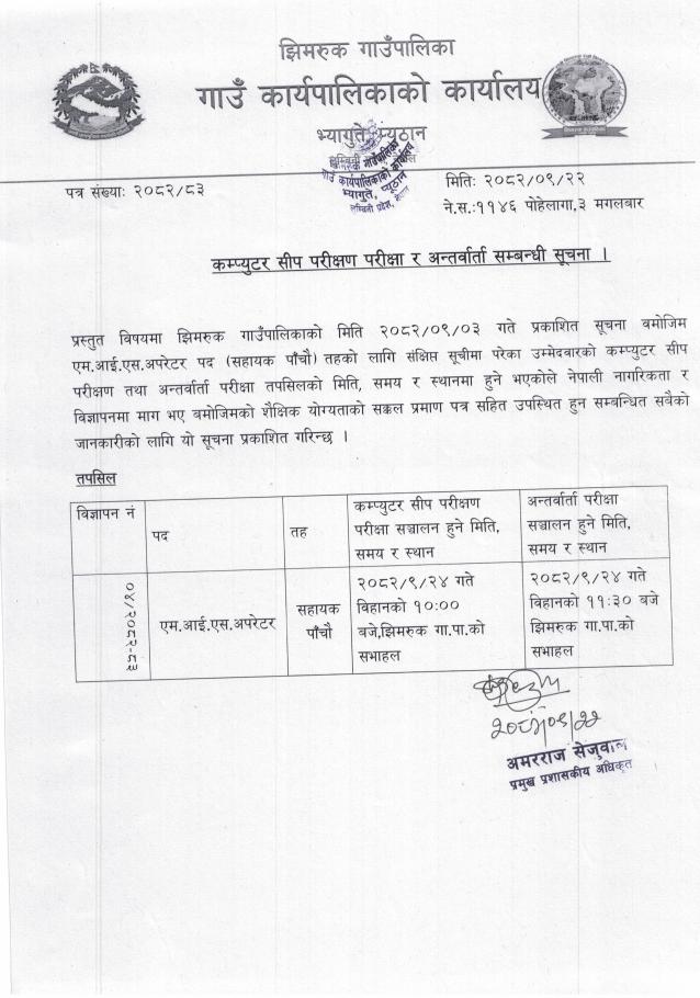 » कम्प्यूटर सीप परीक्षण परीक्षा र अन्तर्वाता सम्बन्धी सूचना ।