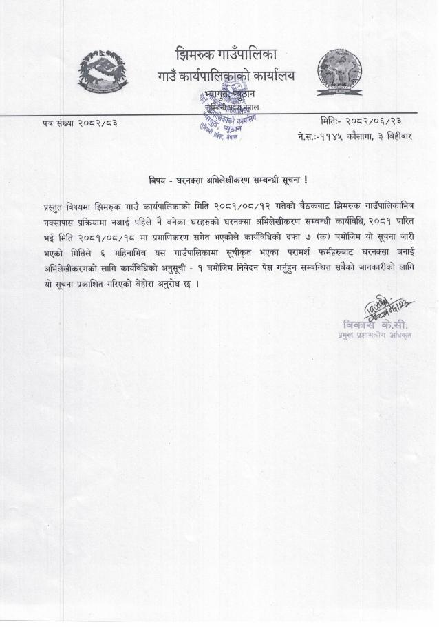 घर नक्सा अभिलेखीकरण सम्बन्धी सूचना ।