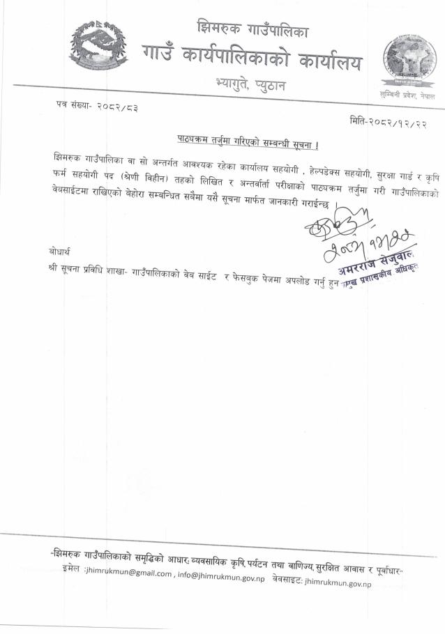 » पाठ्यक्रम तर्जुमा गरिएको सम्बन्धी सूचना ।