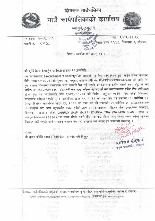 Preparation of 2nd periodic plan of Jhimruk Rural Municiplaity सम्झौता गर्न आउने सम्बन्धमा ।