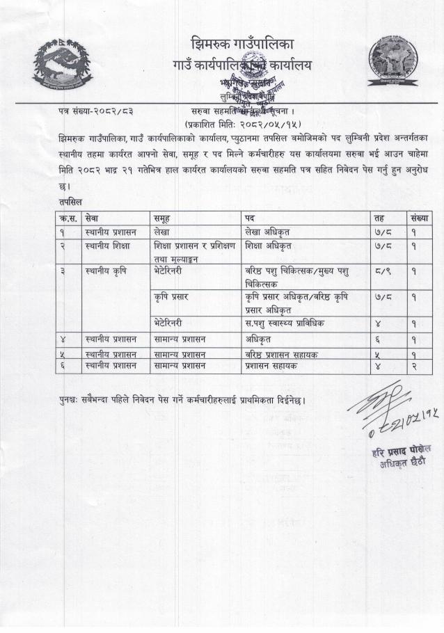 झिमरुक गाउँपालिकाको प्रारम्भिक बातावरणिय परिक्षण प्रतिवेदन तयारीको सार्वजनिक सुनुवाई सम्बन्धी सूचना ।