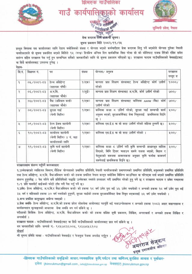 » सेवा करारमा लिने सम्बन्धी सूचना ।