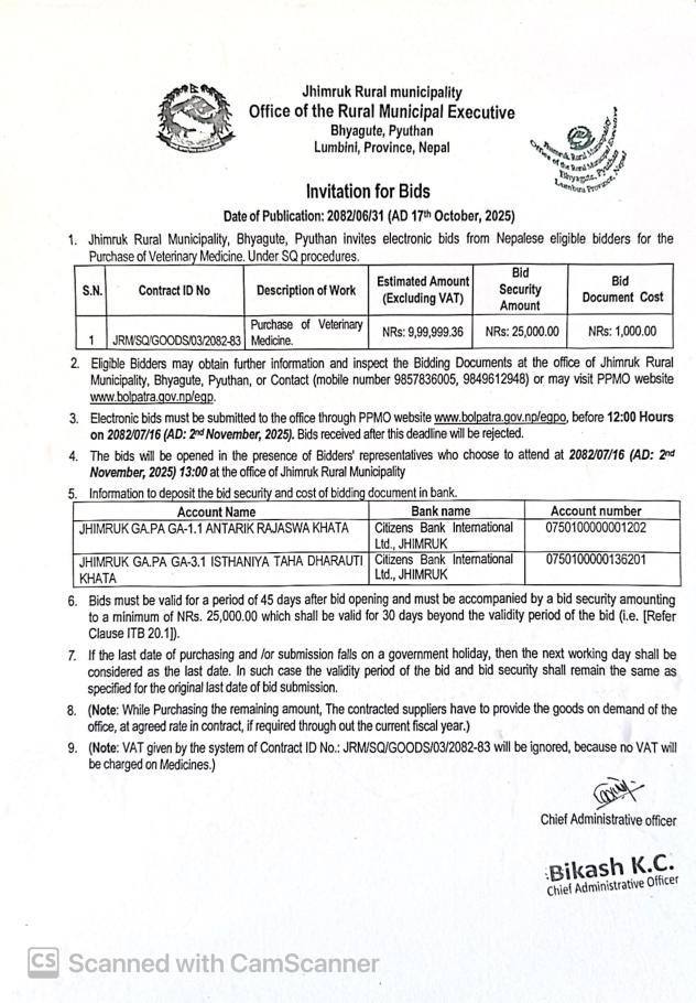 सार्वजनिक खरिद/बोलपत्र सूचना