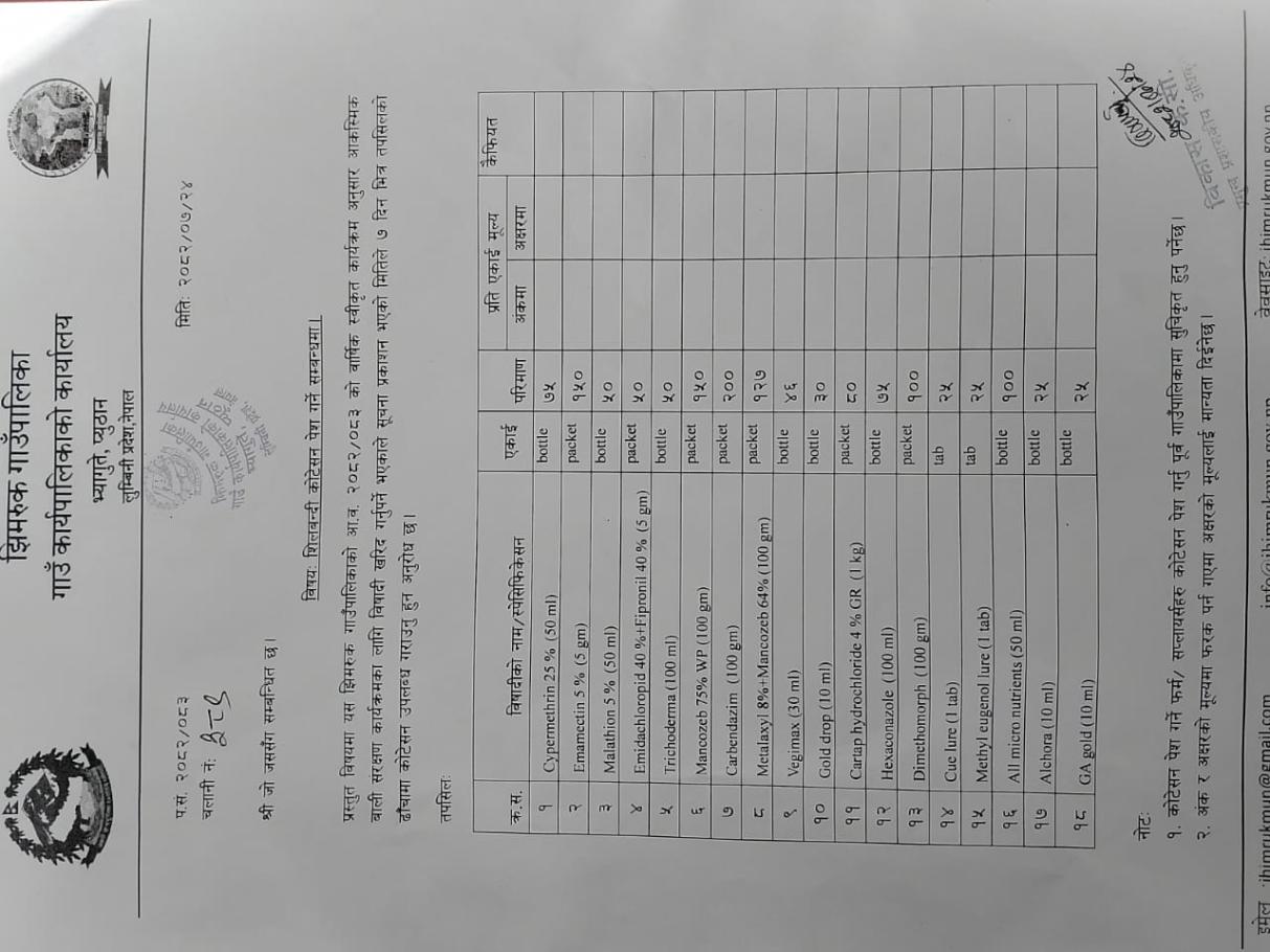 पशु औसधि खरिदको लागी दोस्रो पटक प्रकाशित सूचना ।